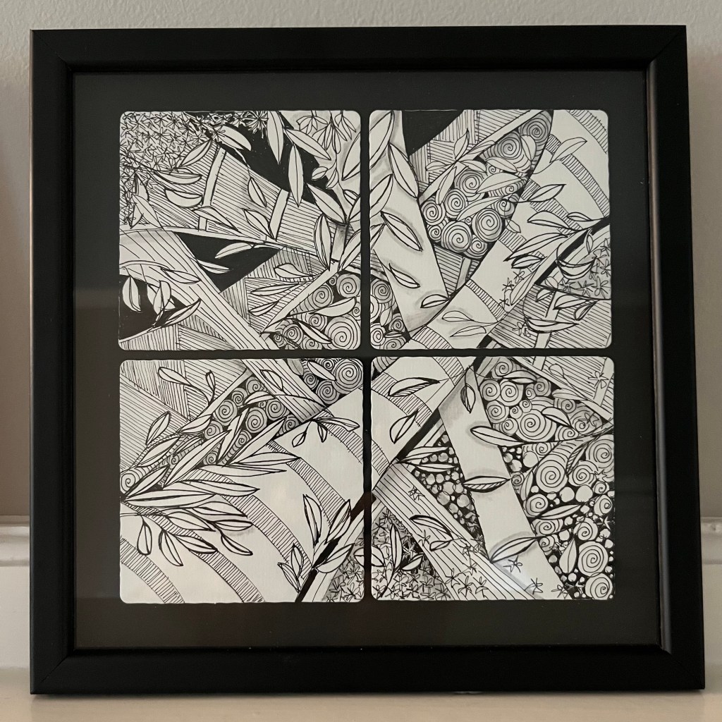 The Zentangle Method deconstructs beautiful patterns or “tangles” into clear step-by-step components. The method begins with a centering of self in a moment of Gratitude and Appreciation and ends with Appreciation of what you have created. By following the steps and motions of a tangle you can achieve a sense of flow, where you can focus on each stroke of your pen and you do not concentrate on the final outcome.