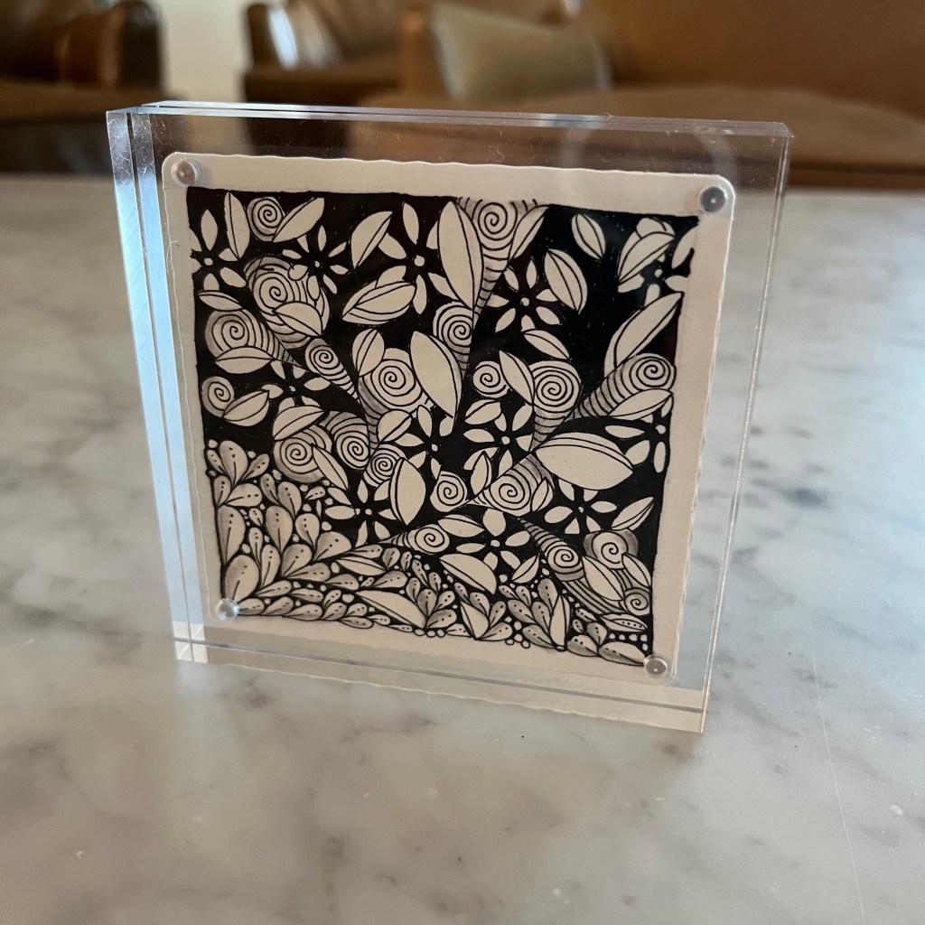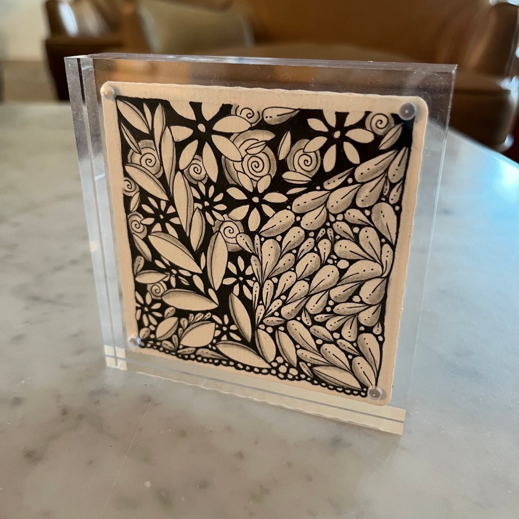 I’ve had a love of flowers since I was a child. The shapes and intricacies of flowers has always inspired me and I enjoy capturing it through Zentangle.